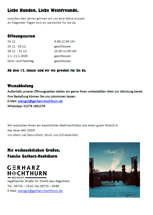 Herzlich Willkommen in der „rheinhessischen Toskana“. Rheinhessen ist das größte der 13 Weinanbaugebiete Deutschlands. Im Herzen der Gebirgszüge Taunus, Hunsrück und Westen, im sogenannten Mainzer Becken, liegt unser traditionelles Weingut am Stadtrand von Gau- Algesheim.