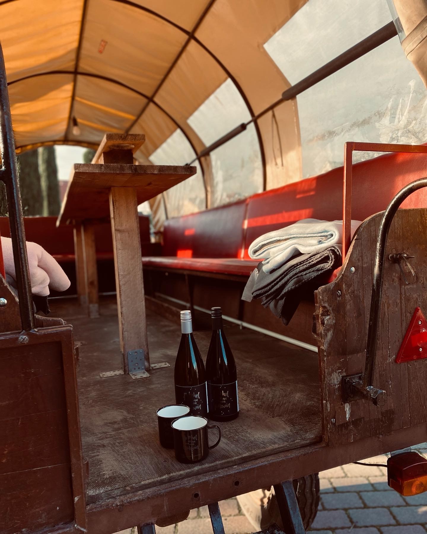 Unsere Planwagen stehen für dich bereit. Genieße eine Rundfahrt in und um unsere Weinberge und lass dich von uns an die schönsten Aussichtspunkte in der näheren Umgebung entführen. Typisch rheinhessisch wirst du während der Fahrt mit Weck, Worscht & Woi versorgt. Eine persönliche Weinauswahl ist auch möglich. Jede Tour kann individuell geplant und an die Gruppe angepasst werden. Von September bis Oktober können wir dir leider keine Fahrten anbieten, denn zu dieser Zeit befinden wir uns in der Weinlese. Sprich uns einfach an. Wir helfen dir sehr gerne weiter.